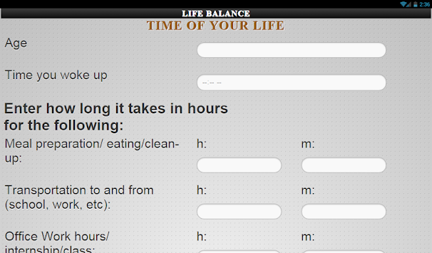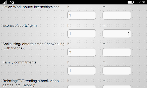 and estimates of time spend in your daily activities