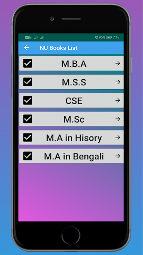 ● MBA ● MSS ● MSc ● MA dalam bahasa Bengali ● Ma dalam Sejarah