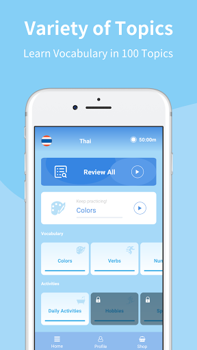 Uji Diri Anda | Pelajari kata-kata dari lebih dari 100 topik yang berbeza menggunakan pelbagai teknik yang berbeza yang akan membantu anda mengingat. Dari Kad Flash hingga Permainan Mendengarkan hingga Kuiz, Vocly akan membuat Anda tetap berada di jari kaki.