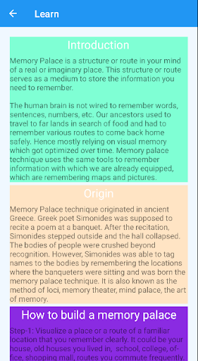 Memory Palace is a structure or route in your mind of a real or imaginary place. This structure or route serves as a medium to store the information you need to remember.