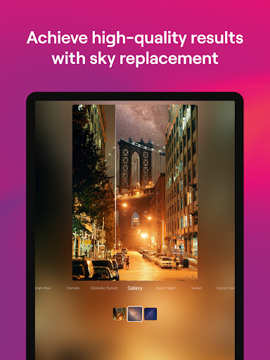 Mudah meningkatkan foto anda untuk meningkatkan kehadiran media sosial anda. Keluarkan butiran yang tidak diingini dan tambahkan langit yang cerah dan menarik yang akan memberi anda lebih banyak suka. Cerahkan gambar-gambar yang bermakna kepada anda dan mengekalkan kenangan indah.