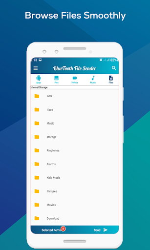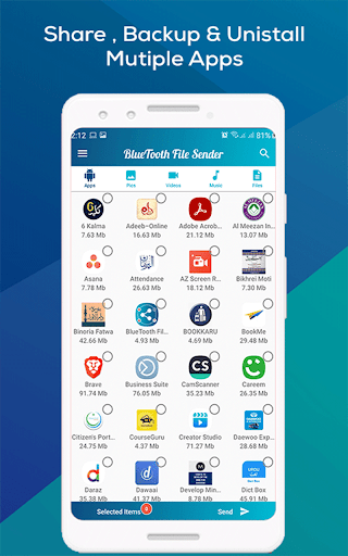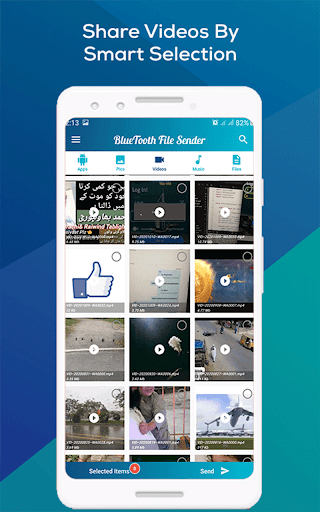 Another convenient and flexible feature of the Bluetooth Sender is that you can select Applications, Audios, Videos, Pictures and all sort of files, all together and share or transfer it. There is absolutely no restriction on what to share or transfer.