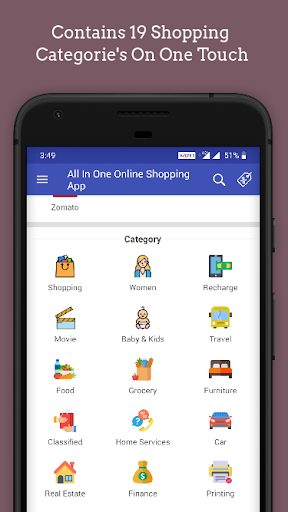 Beberapa kategori utama yang disenaraikan dalam semua ini dalam satu aplikasi membeli-belah adalah