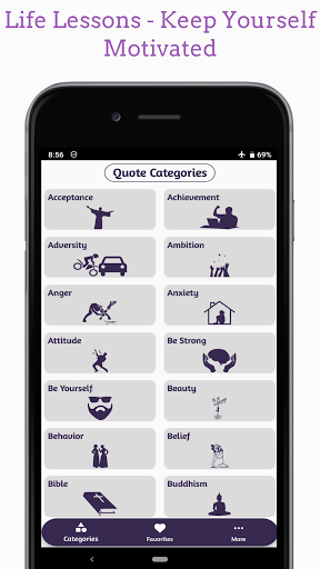 Hanya tatal melalui kategori kutipan yang berbeza dalam aplikasinya & muat semula mood anda & simpan diri anda bermotivasi.