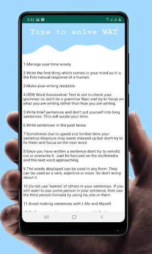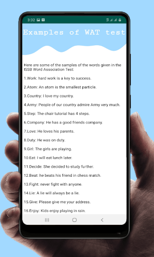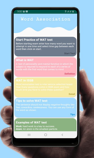 Calon yang akan muncul di ISSB setelah berjaya menyelesaikan ujian awal dari pusat pengambilan Pakar Udara Pakistan, Tentara Pakistan, PakistanTentera Laut anda perlu menyediakan ujian bertulis yang akan diambil dari anda di pusat-pusat ISSB pada hari kedua ketibaan anda.Aplikasi ujian persatuan kata akan membantu anda untuk meningkatkan kelajuan penulisan anda dan juga untuk memperbaiki struktur ayat anda dengan pemikiran yang lebih baik.