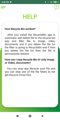 Aplikasi ini adalah Recycle Bin adalah mengitar semula imej video dan dokumen