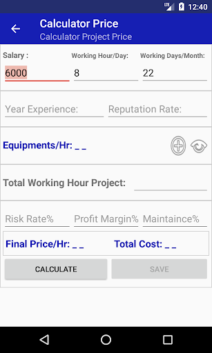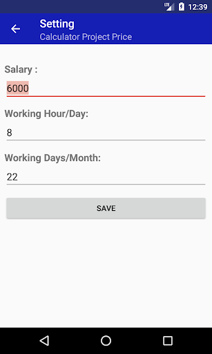 1- in Setting, you can put your salary, a Total working hour in a day & Total days working in a month. To use it as default data in calculator cost screen.