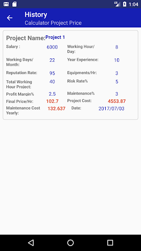 4- In History: You can see more details for your saved projects calc price. and you can delete it if you want that by long press in the project and delete.