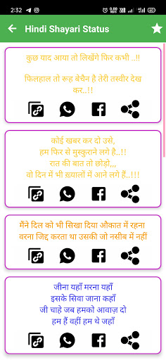 Hindi Shayari With Nice And Attractive Design. In This App You Can Use Online. Daily New Online Hindi Status & Shayari.
