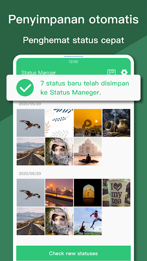 Pengurus Status membolehkan anda menyemak dengan cepat dan menyimpan status WhatsApp.