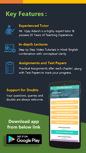 This App has Step by Step Video Tutorials in Hindi-English combination for CBSE Class 10 Mathematics.