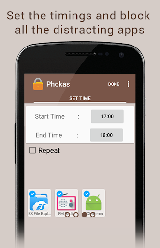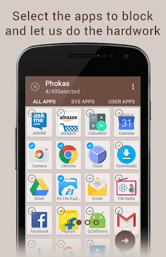 Faced one too many High Pressure Situations, say Exams for instance, with the phone by your side and its beautiful distractions, that we all love, all around ? Pho (ne) kas, is a self control app to help you control your urges of opening that distraction, when something else might need your attention more! Simply select the list of apps you want to put on hold and the time you want to put them on hold for and you're done. Phokas won't put on hold any other apps that you don't select and you can continue to use whatever you need, without switching off your phone. Phokas will make sure nothing disturbs you if you don't need it to, and you ace that exam or presentation or whatever's needed ASAP, finished on time, and well!
