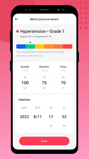 Aplikasi ini tidak termasuk fungsi mengukur tekanan darah, ia hanya memberikan anda fungsi rakaman tekanan darah dan penjejakan.
