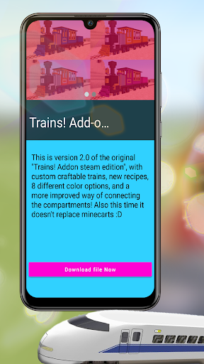 The trains here are fast locomotive with a speed of 300 km/h or 500 km/h, you can craft trains by adjusting the speed of these trains mods to see more beautiful animals, mobs for mcpe with vanilla addon shader packs or realistic shader. We will also prepare a skin pack from the mechanic's uniform or skin boys and girls that you can choose and use when running this train mod for minecraft. Cool mods for mcpe are suitable for you adventures or you use railways for mining.
