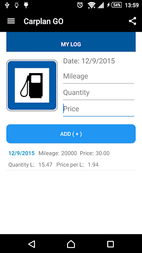 Carplan GO enables you to track all fuel costs as well as service records and costs.