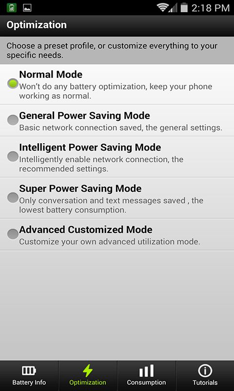 Easy Battery Saver is easy to use by four preset saving modes and advanced customized mode. Select one mode, the problems will go away.