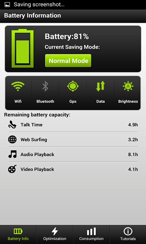 2) Intelligent Saving Mode manage the eight different controls and smart to save more battery than general saving mode.