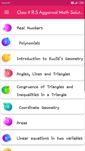 This app is the digital form of mathematics book of class 9 by RS AGGARWAL in pdf format.