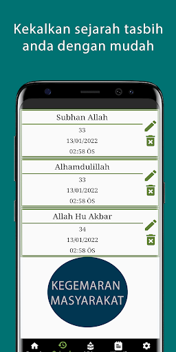 • Kaunter tasbih digital menyimpan nilai kiraan walaupun aplikasi ditutup secara tidak sengaja atau sengaja.