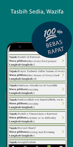 • Tesbih Counter Lite boleh membawa anda melalui struktur kompleks wazifas berbilang langkah (urutan tasbeeh) tanpa sebarang usaha cth. tasbih Fatimah AL-Zahra