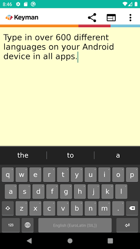 Keyman menawarkan papan kekunci sistem dalam semua aplikasi pada peranti anda, dengan teks ramalan untuk banyak bahasa.