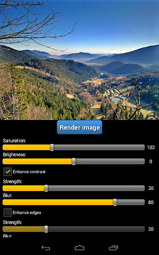 Kamera HDR Pro mencipta gambar resolusi penuh yang terdedah dengan kamera telefon dan dari gambar yang sudah disimpan.Oleh itu dua atau tiga gambar dengan pendedahan yang berbeza dijahit menjadi satu imej HDR.Pelbagai parameter boleh dikumpulkan seperti ketepuan, kecerahan, kontras, butiran, penjajaran gambar dan lain-lain.