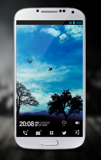 Kertas dinding hidup ini mempunyai adegan langit biru yang aman pada waktu petang, dengan awan terapung santai dan pokok-pokok berayun dengan angin. Apabila anda sapu untuk menukar skrin rumah, adegan bergerak dengan kesan paralaks.