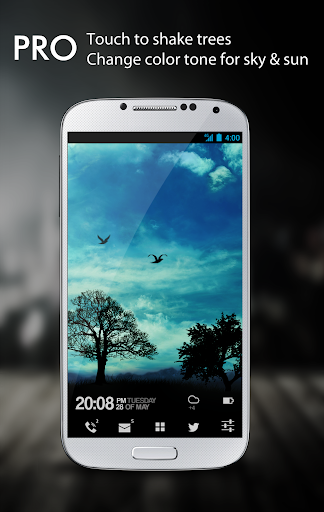 Laman Utama -> Tekan Menu -> Pilih Wallpaper -> Pilih Live Wallpaper -> Pilih Blue Sky Pro dari senarai.