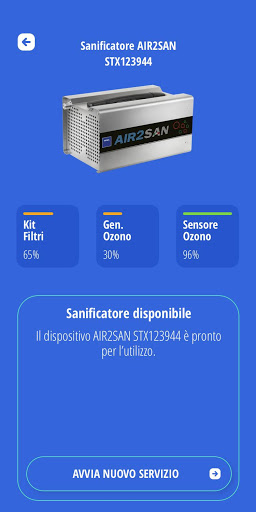 TEXA AIR2 SAN adalah pembersih ozon paling moden untuk kenderaan, bilik, studio profesional, kapal dan persekitaran kecil yang lain. Ini adalah produk 100% Itali, yang disertakan dengan proses automatik sepenuhnya, kehadiran ozon, sensor suhu dan kelembapan dan penukaran semula ozon menjadi oksigen pada akhir kitaran untuk mengelakkan risiko mabuk. Kemungkinan untuk menetapkan waktu di mana ia diaktifkan dan laporan cetak adalah pilihan yang sangat berguna.