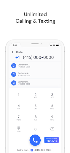 Panggilan telefon tanpa had: Dengan TEXTR anda boleh mendapatkan nombor sebenar sebagai baris kedua anda dari kod kawasan tempatan AS dan Kanada, dan membuat panggilan telefon tanpa had di seluruh negara. Apa lagi, anda boleh membawa ahli pasukan anda di atas kapal untuk memanggil mana -mana nombor.