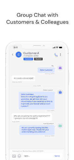 Muat turun textr secara percuma di telefon atau tablet Android anda, berikan ahli pasukan jauh anda untuk mengendalikan mesej teks untuk nombor telefon yang berbeza, meningkatkan kecekapan perniagaan anda, dan beralih jam kerja, jadi pelanggan anda dijaga 24/ 7. Tiada peluang perniagaan ditinggalkan, tiada pertanyaan pelanggan tanpa pengawasan.