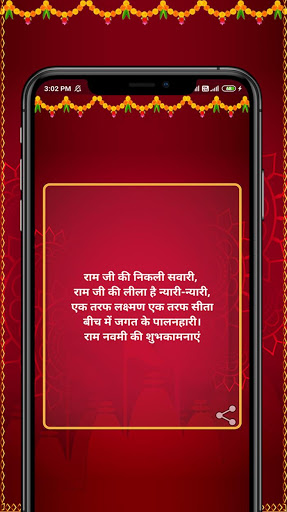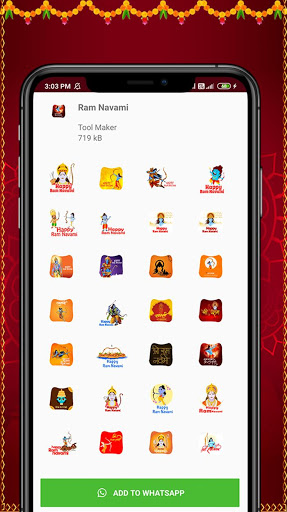 app has 30 plus awesome stickers, 30 Ram Navmi Status, and 50 Ram Navmi Messages for Whatsapp and other messangers.