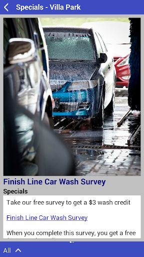 Download the App for specials, coupons, loyalty rewards and package discounts from Finish Line Car Wash in Villa Park, Illinois. Whether its winter grime or summer dust, Finish Line will have your car looking clean and new from roof to tires. It’s like a spa for your car, and car wash purchases come with free use of Finish Line’s powerful vacuums so your interior stays clean, too. Scroll through for car wash plans that include unlimited washes for a low monthly price. It’s all on your smart phone when you tap the App for: