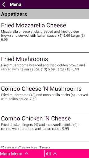 • Menus and photos