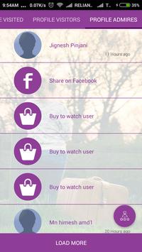 ¿Sigue pensando que es la persona que está al día comprobando su foto de perfil y status.Your curiosidad termina aquí. Debido a que esta aplicación le permitirá saber acerca de aquellos persona y amigos. Obtendrá la lista de persona que está buscando a su perfil diario y comprobar el estado de todos los días. Con esta increíble aplicación que se encuentra su aplastamiento / tu mejor amigo / a sus visitantes en su perfil / Tu amor.