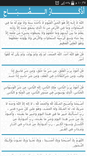 ويتضمن هذا التطبيق أذكار أساسية يكثر المسلم من قراءتها في اليوم والليلة وهي: