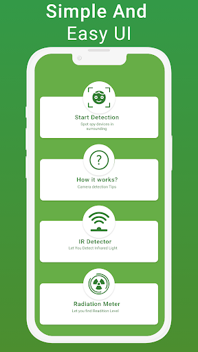 Melalui apl pengesan kamera tersembunyi ini, pengguna boleh mengesan perisian pengintip dan perisian hasad yang berbeza dengan mudah termasuk peranti radiasi.