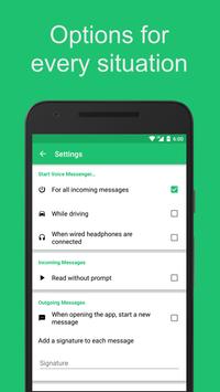 Text without hands with Voice Messenger! Voice Messenger allows you to send and receive text messages by voice. Automatically have new text messages read allowed and respond hands free! Customize the voice commands and personalize how you communicate.