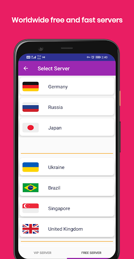 Turbo aplikasi VPN (VPN dengan penggalak telefon, VPN dengan CPU Cooler, VPN dengan Battery Saver) adalah aplikasi VPN yang sangat cepat dan selamat dengan jalur lebar tanpa had dan banyak pelayan selamat. Dalam aplikasi VPN ini apabila anda mengklik pada pilihan Pilih Anda boleh melihat senarai pelayan VPN. Anda boleh menyambung mana-mana pelayan negara pada hanya satu klik. Apabila anda berhubung dengan mana-mana pelayan, anda dapat melihat masa dalam aplikasi VPN ini. Sekarang anda boleh dengan mudah menyahsekat semua laman web dan mendapat akses.