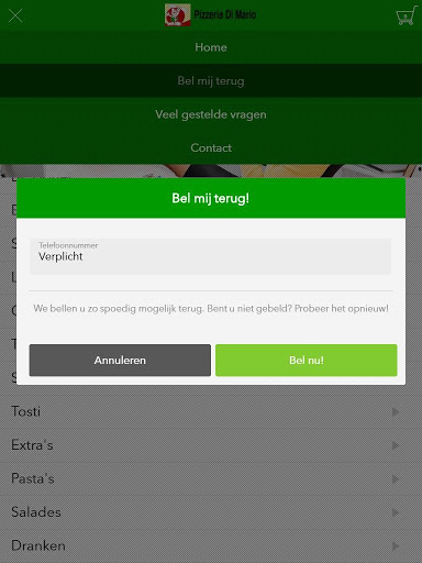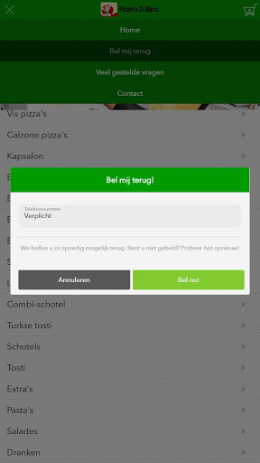 Heeft u een vraag en/of opmerking over een bepaald gerecht en wilt u teruggebeld worden door ons? Dit kunt u doen door op de ‘’Bel mij terug’’ knop te drukken en u wordt kosteloos door ons teruggebeld!