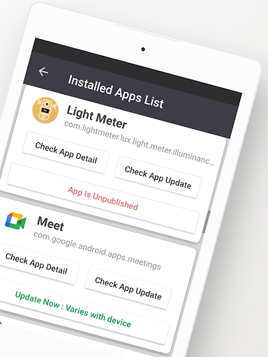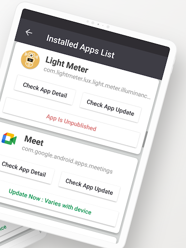 7.Semak nama pakej aplikasi dan permainan terperinci, laluan APK, saiz APK, SDK MIN, SDK sasaran dan keizinan.Anda tidak perlu mengalami pelbagai pilihan dan struktur rumit hanya mengikuti langkah -langkah mudah untuk membiarkan kerja anda selesai.Perisian kemas kini telefon adalah aplikasi yang sangat mudah digunakan.Sekarang kemas kini aplikasi atau kemas kini sistem perisian yang telah dipasang dan menyahpasang aplikasi hanya dalam beberapa saat melalui aplikasi ini.Pemeriksaan perisian yang dikemas kini untuk kemas kini terkini atau terkini yang tersedia untuk telefon pintar anda dan menghantar pemberitahuan amaran kepada anda.Dengan satu ketuk, perisian ini mengemas kini semua aplikasi untuk telefon Android terkini.Kemas kini perkhidmatan dan pemasangan perisian versi baru.Senarai Kemas Kini App dan Semua Pemeriksa Kemas Kini Apl adalah alat pengesan versi dinaik taraf digital