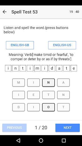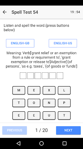 * Practise and learn your spellings. Over 240 preset tests of 20 min each.
