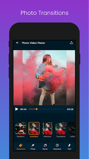 ♫ Perfect photo video editor with visual effects and random transitions for your images with background music.