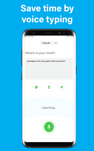 Membuat hidup mudah - tidak lagi berjuang untuk menulis teks pendek atau panjang. Tidak seperti aplikasi suara yang lain, ucapan ke teks tidak berhenti mendengar apabila anda berehat untuk bernafas atau berfikir. Menggabungkan papan kekunci terbina dalam supaya anda dapat menikmati kemudahan diktasi untuk kata-kata dan kemudahan mengetuk tanda baca & amp; simbol. Direka untuk membuat penulisan cepat dan mudah. Kesalahan ejaan