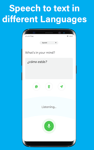 Menggunakan ucapan untuk teks dalam talian, anda boleh berkongsi fail teks anda dengan semua aplikasi yang disokong pada anda telefon. Anda boleh menyalin teks dan hantar sebagai borang mesej/teks ke kenalan anda. Ucapan kepada penukar teks adalah mudah digunakan untuk menentukan/mengenali teks itu adalah suara yang menaip dalam semua bahasa yang boleh dihantar sebagai SMS atau disalin dan disisipkan ke dalam semua aplikasi lain yang ada di peranti anda. Aplikasi ini menggunakan pengiktirafan/mikrofon ucapan terbina dalam Androids untuk menjadikan ucapan menjadi teks dan diterjemahkan dalam semua bahasa secara serentak. Teks akan muncul selepas anda selesai bercakap teks dan ia adalah suara yang menaip dalam semua bahasa. Sebaik sahaja anda menyingkirkan App Voice to Text Converter, anda boleh menggunakan aplikasi Teks Speak dan menghantar teks dan artikel yang cepat dalam mana -mana media sosial dan semua aplikasi pemesejan dalam peranti anda. Penaipan Suara - Audio ke Teks Penukar adalah menaip suara dalam semua bahasa.