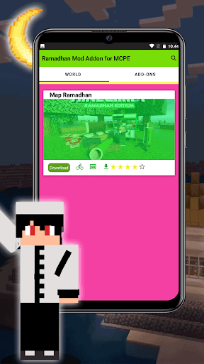 Akhirnya, bulan yang dikasihi dan diberkati telah tiba. Kini juga terdapat di dunia MCPE. Membentangkan beberapa ciri yang membuat anda merasakan suasana Ramadan di dunia MCPE yang tidak kurang menarik daripada dunia nyata. Di dalamnya terdapat addon masjid, yang membolehkan anda juga merasakan suasana tempat ibadat. Terdapat juga penduduk kampung yang bertindak sebagai vendor makanan perjalanan. Juga dilengkapi dengan ciri perang Scabbard, seperti ketika di kampung. Jemput seberapa banyak rakan yang anda boleh, maka anda boleh memilih warna dan jenis sarung tangan yang ada. Adakah anda seorang pahlawan di dunia sebenar Ramadhan Mod untuk MCPE. Tetapi berhati -hati, kerana bermain perang scabbard di dunia nyata berbeza dari dunia MCPE. Pastikan Roh Ramadhan Roh untuk MCPE dan sentiasa menunjukkan semangat Ramadhan anda. Peta Ramadan