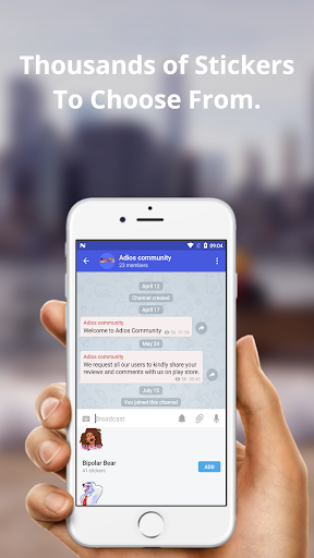 Tambahkan kumpulan atau saluran anda yang ada ke ADIOS Messenger untuk mula meningkatkan khalayak ahli anda. Main permainan terus di tetingkap sembang atau pelajari sesuatu yang baru dari bot trivia