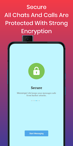 SECURE: We made it our mission to provide the best security combined with ease of use. Everything on Messenger Lite, including chats, groups, media, etc. is encrypted using a combination of 256-bit symmetric AES encryption.