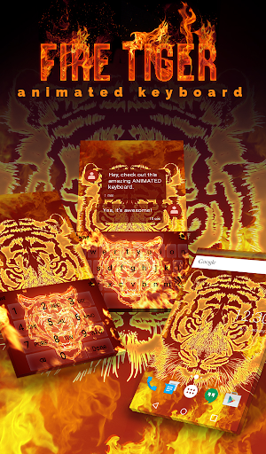 The custom call screen design is the final touch of our free theme Fire Tiger Keyboard Wallpaper. Fans of moving backgrounds love this cool dynamic twist. Try this option for a full Android custom look!