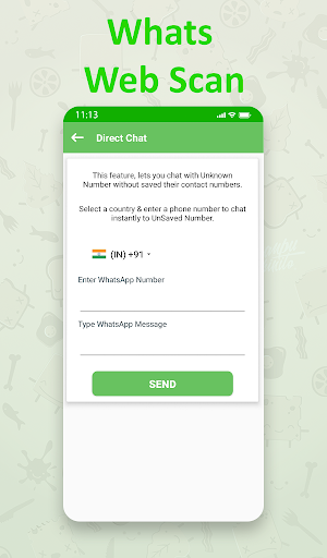 You can chat with anyone without having their phone number saved on your device. Whats Web Scanner also provide facilities to open direct chat without saving a contact.